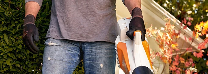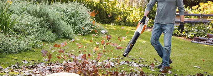 Воздуходувка весит всего 2,3 кг, поэтому руки меньше устают даже при длительной работе во время уборки больших участков.