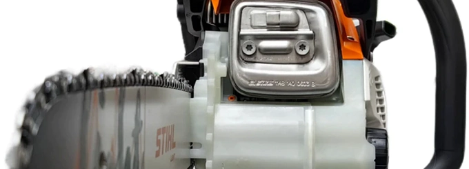 Особенно удобно: вы управляете всеми функциями, такими как запуск, работа и остановка, одной рукой благодаря однорычажному управлению. И перезапуск после перерывов в работе выполняется без особых усилий, потому что комбинированный рычаг с функцией остановки автоматически возвращается в рабочее положение. Еще одна удобная функция - это надежное и простое боковое натяжение цепи.