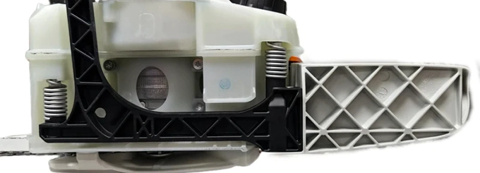 Воздушный фильтр легко снимается и очищается – это продлевает ресурс двигателя и сохраняет мощность. Ручной топливный насос облегчает запуск после длительного простоя. Подтянуть цепь можно в любой момент без использования инструментов.